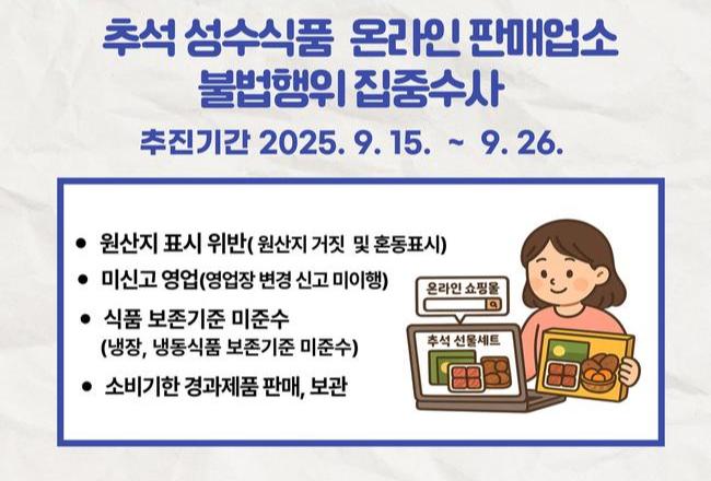 안전한 추석식탁 경기도가 지킵니다…성수식품 온라인 판매 집중 수사
